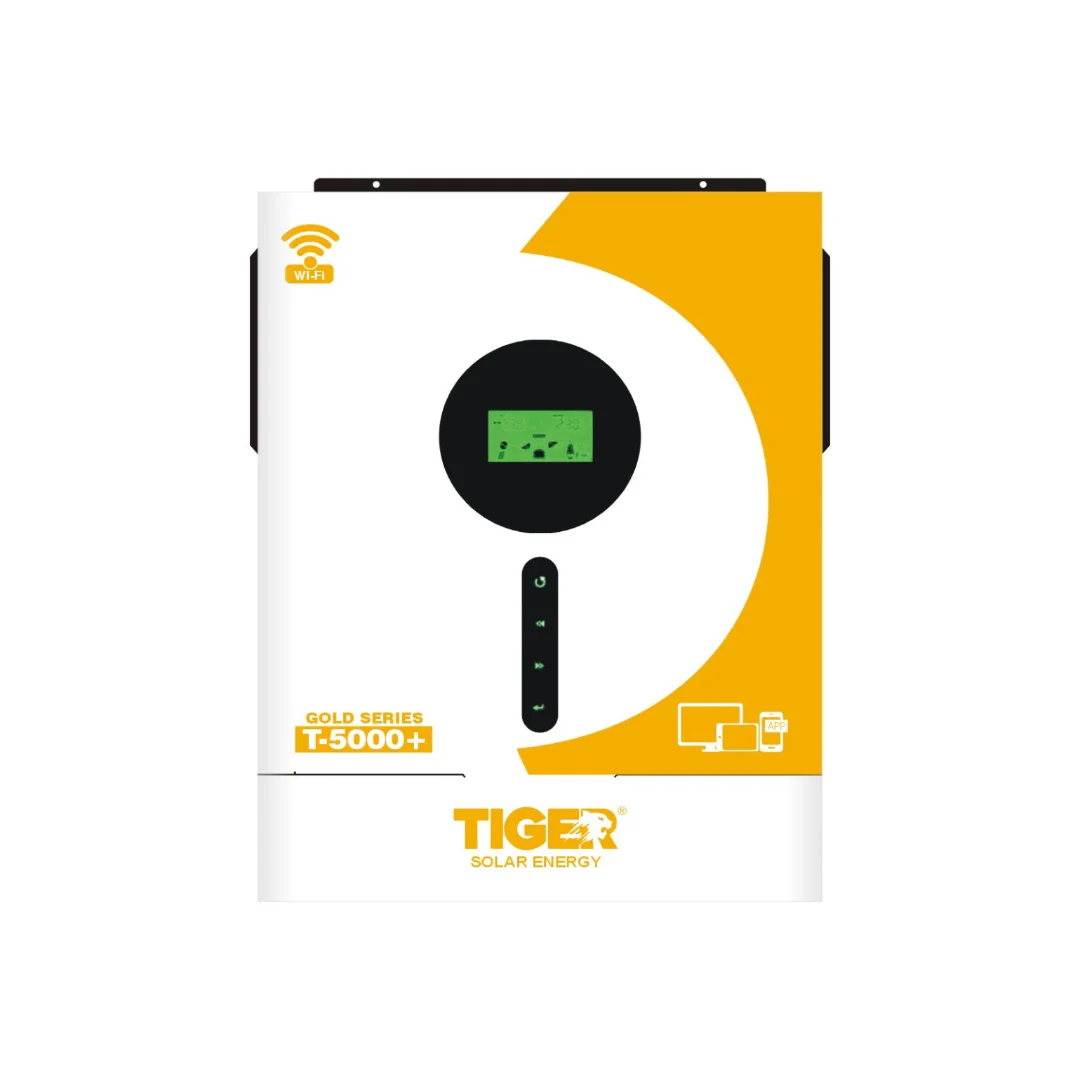 The Tiger Gold Series T-5000+ 3.6KW solar inverter is a state-of-the-art solution designed for energy efficiency and modern convenience. Equipped with built-in Wi-Fi, RGB lights, and a touch display, it offers reliable performance for both residential and commercial energy systems.